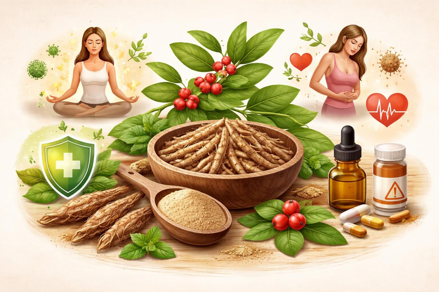 Le proprietà dell’ashwagandha sono classificate sotto la categoria degli “adattogeni”, sostanze naturali che aumentano la resistenza del corpo a stress di diversa natura (fisico, chimico o biologico). Il segreto della sua efficacia risiede nei withanolidi, composti bioattivi che regolano la risposta ormonale e immunitaria.