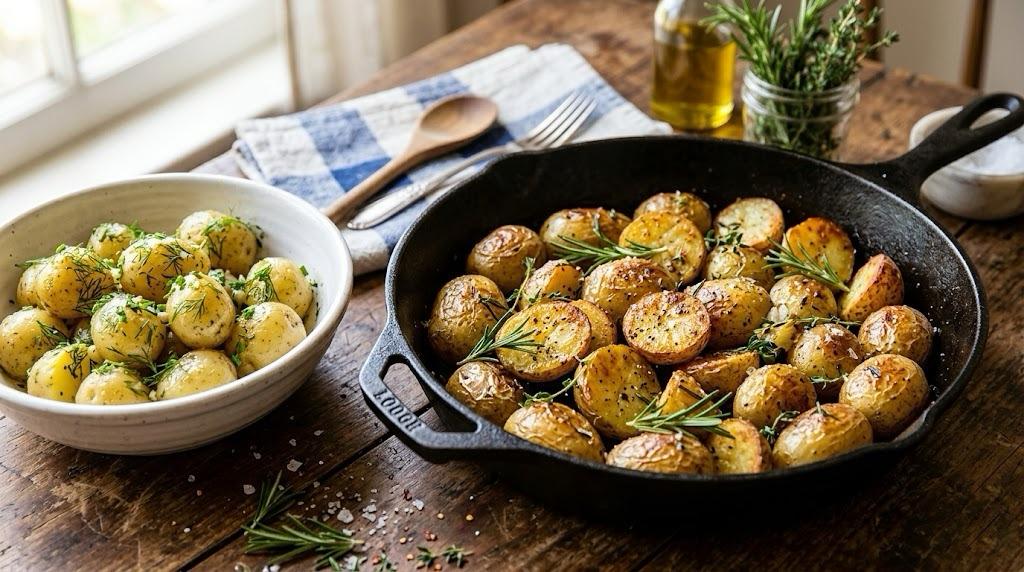 Se avete poco tempo ma non volete rinunciare al gusto, le patate novelle in padella sono la soluzione ideale. Questa tecnica permette di monitorare la cottura costantemente, saltando i tuberi fino a raggiungere la doratura desiderata. Rispetto al forno, la cottura in padella conferisce una consistenza leggermente più rustica e un aroma di burro o olio più persistente, perfetto per chi cerca un sapore deciso.